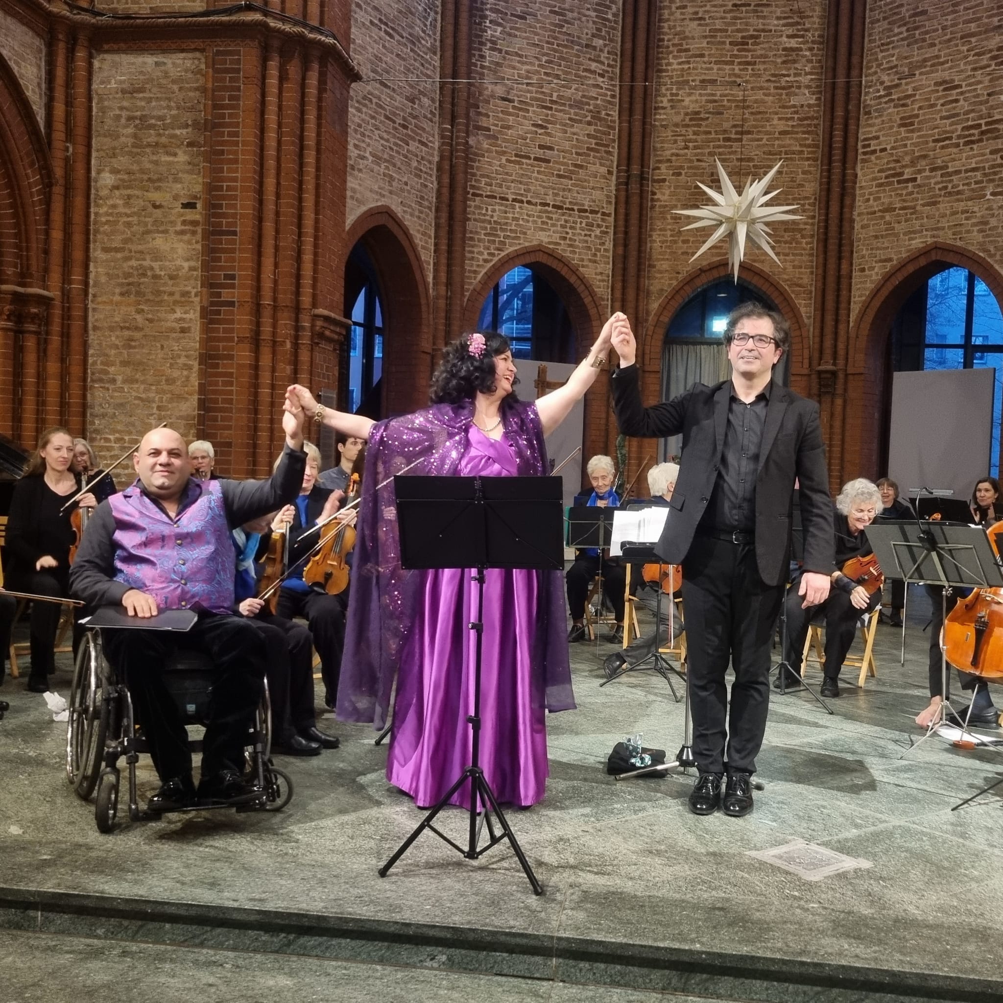 Von Herzen danken wir allen Solistinnen und Solisten, die diesem Nachmittag ihre Stimme, ihre Kunst und ihre Persönlichkeit geschenkt haben: Kristina Gordadze (Sopran), Aziza Nabhan (Mezzosopran), Artak Kirakosyan (Tenor), Elmen Goßow (Violine) sowie Pablo Bader (Lyrik und Rezitation). Mit großer Sensibilität, Ausdruckskraft und Leidenschaft haben sie dem Konzert seine besondere Tiefe verliehen und das begeisterte Publikum auf eine emotionale Reise mitgenommen.